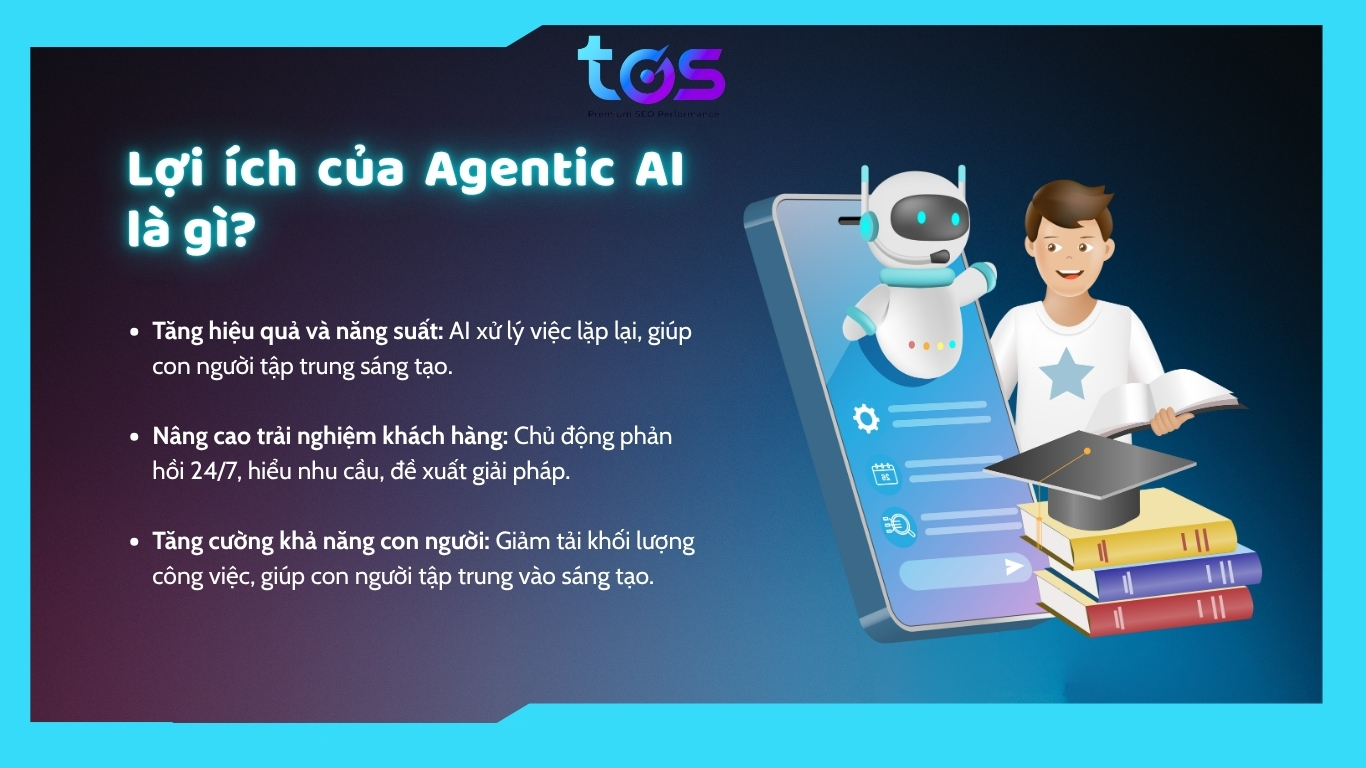 Agentic AI giúp mở rộng đáng kể khả năng tự động hóa trong doanh nghiệp, mang lại nhiều lợi ích thiết thực: