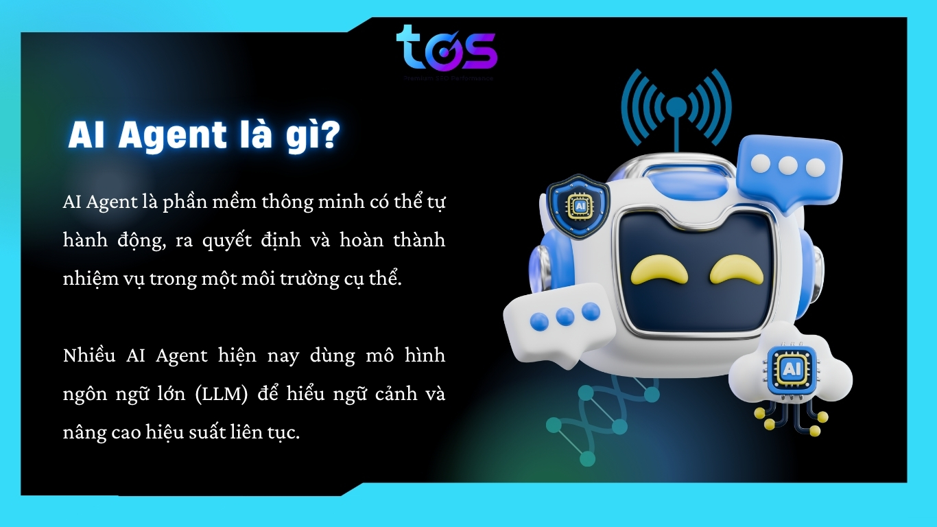 AI Agent (tác nhân AI) là một hệ thống phần mềm thông minh có khả năng tự hành động, tự ra quyết định và hoàn thành nhiệm vụ trong môi trường nhất định. Không giống như các công cụ tự động hóa truyền thống chỉ làm theo lập trình sẵn, AI Agent có thể: