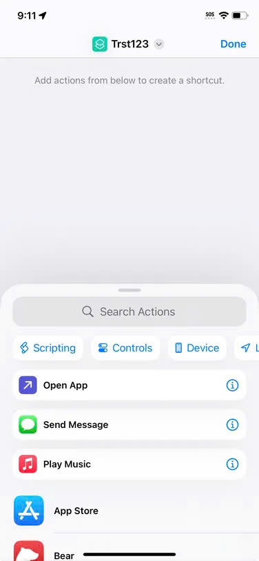 - Sau khi đặt tên cho phím tắt, bạn sẽ được chuyển hướng ngay bên dưới phím tắt đó để “thêm các hành động từ bên dưới để tạo phím tắt”.