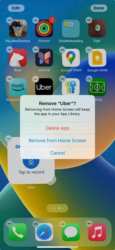 - Trên menu bật lên, chạm vào Xóa khỏi Màn hình chính . Biểu tượng gốc sẽ không bị xóa, chỉ bị ẩn; bạn luôn có thể tìm thấy nó trong Thư viện ứng dụng.
