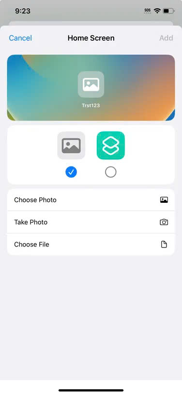 - Mặt khác, nếu bạn muốn thay thế bằng ảnh của riêng mình, hãy chọn biểu tượng ảnh. Bạn sẽ có thể chọn ảnh, chụp ảnh hoặc chọn tệp. Giả sử bạn đã lưu ảnh trong Ảnh, hãy chạm vào Chọn ảnh và chọn ảnh bạn muốn sử dụng.