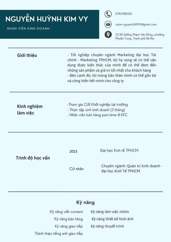 Dưới đây là một mẫu CV ứng tuyển việc làm cho sinh viên mới ra trường, bạn có thể tham khảo.