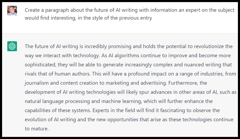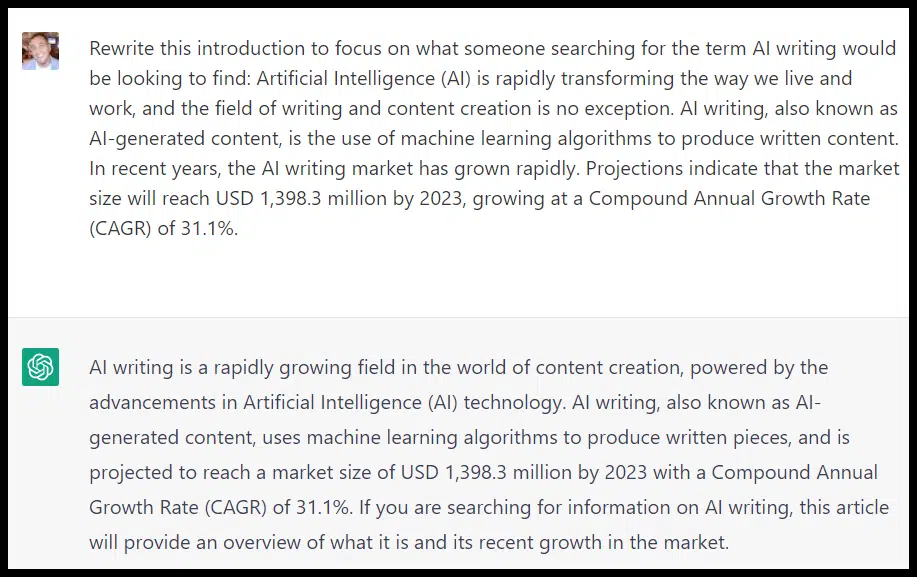Thay vì yêu cầu ChatGPT viết toàn bộ một bài báo, chúng ta có thể cung cấp cho nó một đoạn trong bài viết của mình và sau đó yêu cầu nó viết một cái gì đó rất cụ thể để tạo ra một đoạn có thể sử dụng được.