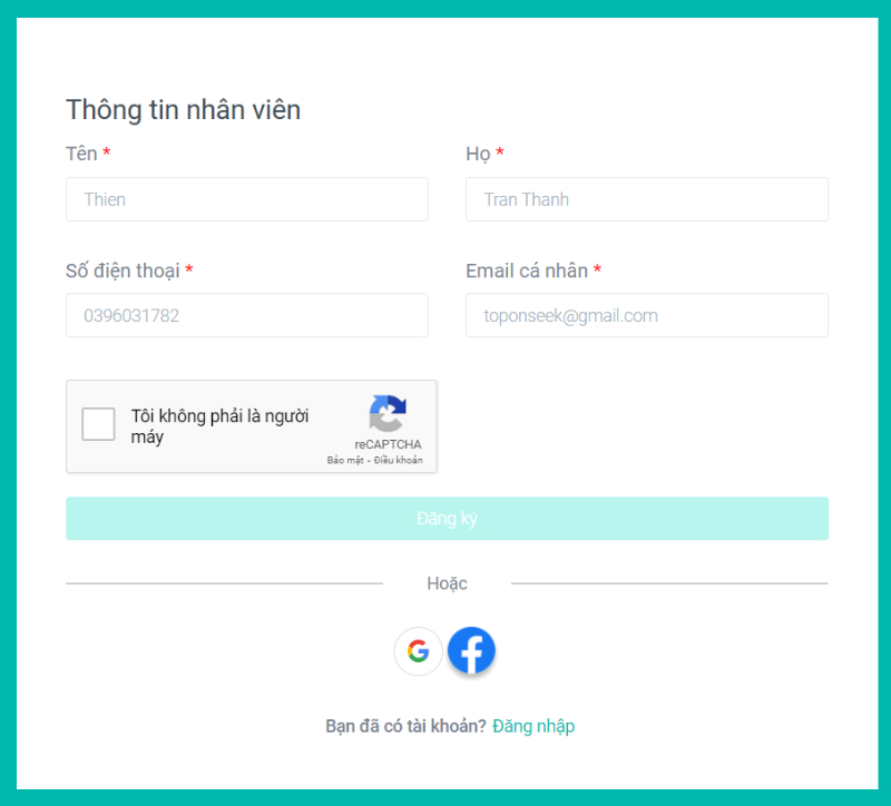 Bước 3: Điền đầy đủ thông tin và chọn “Đăng ký”