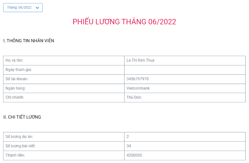- Khi Phòng Nhân sự cập nhật thông tin thanh toán này, các bạn sẽ nhận được email thông báo.