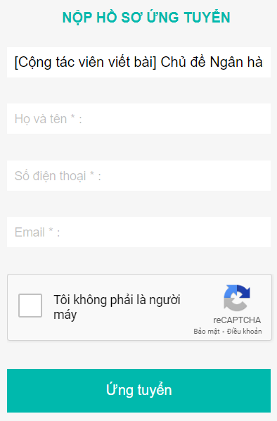 – Tại trang tuyển dụng, bạn điền đầy đủ thông tin hồ sơ ứng tuyển (email phải trùng với email tại hệ thống ctv.toponseek.com) và ấn “Ứng tuyển”