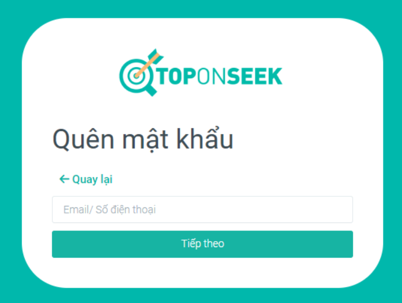 - Thông tin email cá nhân phải chính xác vì TopOnSeek sẽ gửi thông tin thanh toán và các thông báo cho bạn qua email này.