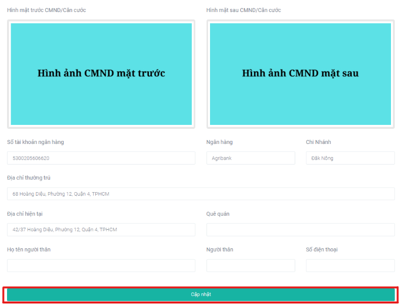 Bước 2: Sau khi điền đầy đủ thông tin, các bạn kiểm tra lại và chọn “Cập nhật”