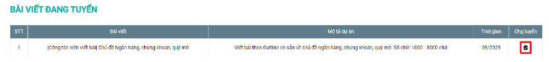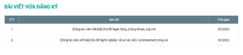 – Những dự án mà bạn đã đăng ký ứng tuyển thành công sẽ được hiển thị tại bảng “Bài viết vừa đăng ký” ở “Trang chủ”.