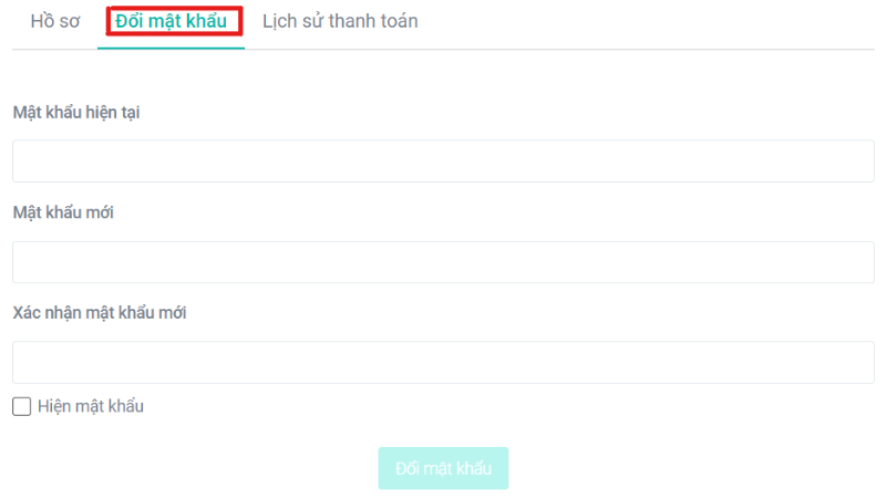- Các bạn có thể thay đổi lại mật khẩu đăng nhập tại mục “Đổi mật khẩu” trong phần “Hồ sơ”.